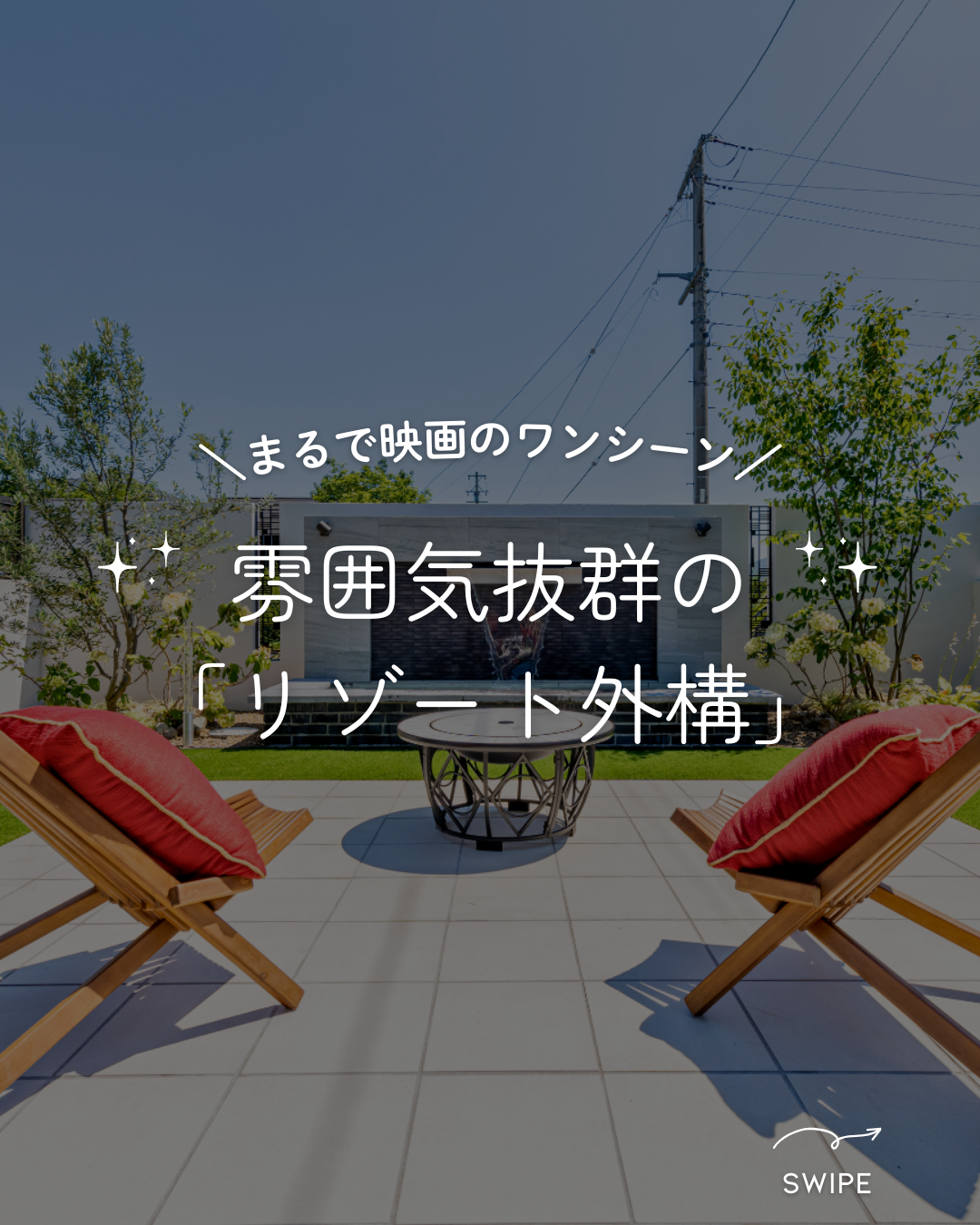 特にリゾートスタイルの外構は、建物に開放的な息吹を与え、住む人のライフスタイルを劇的に豊かにしてくれます。