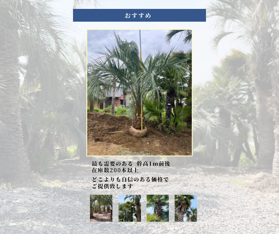 最も需要のある幹高1m前後のココスヤシが200本以上