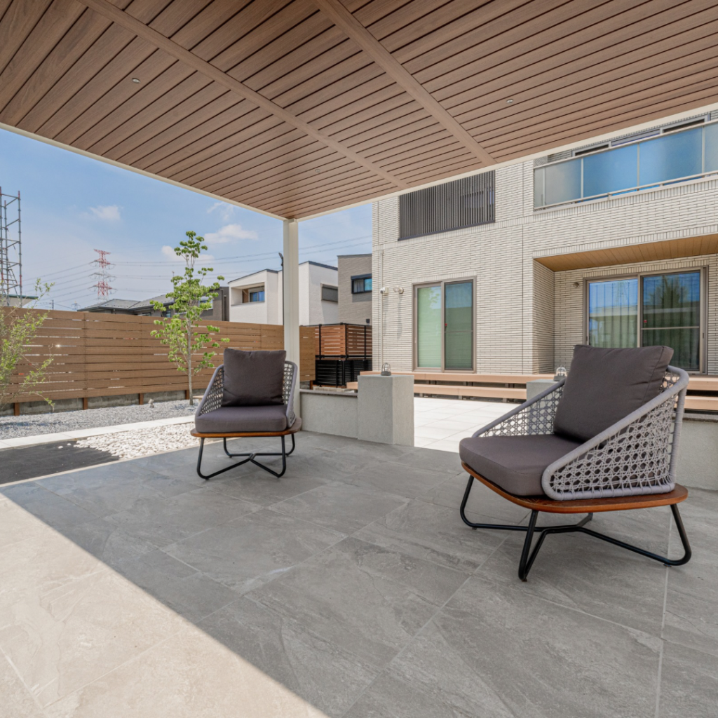 お気に入りのチェアを置けば、そこはもう屋外のプライベートなくつろぎ空間。読書をしたり、コーヒーを飲んだり、思い思いの時間を過ごすことができます。