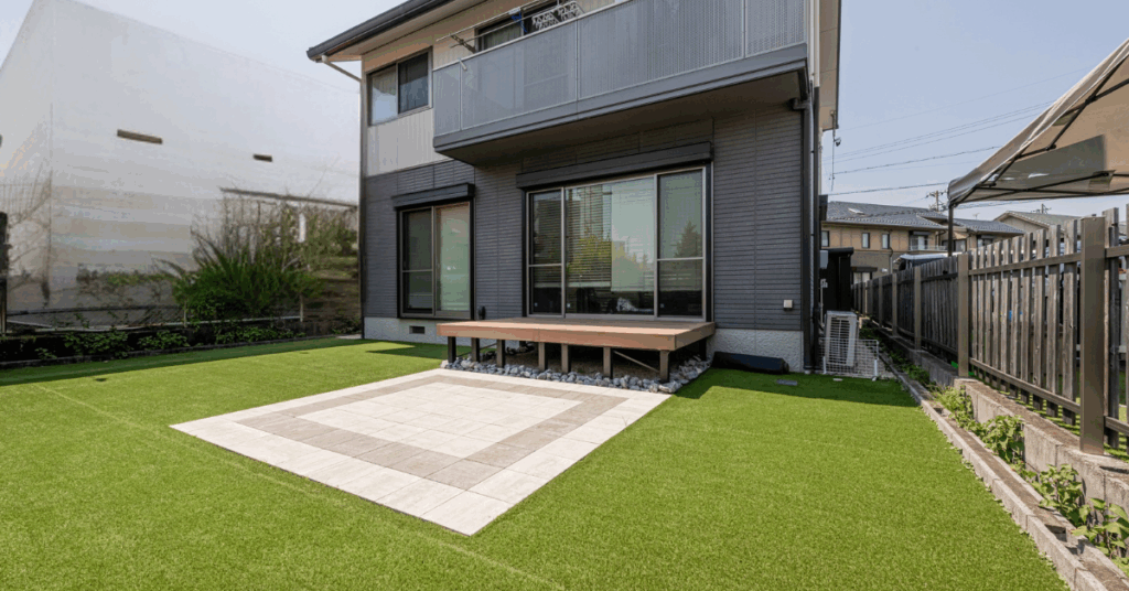 お手入れいらずで一年中緑を楽しめる人工芝のお庭