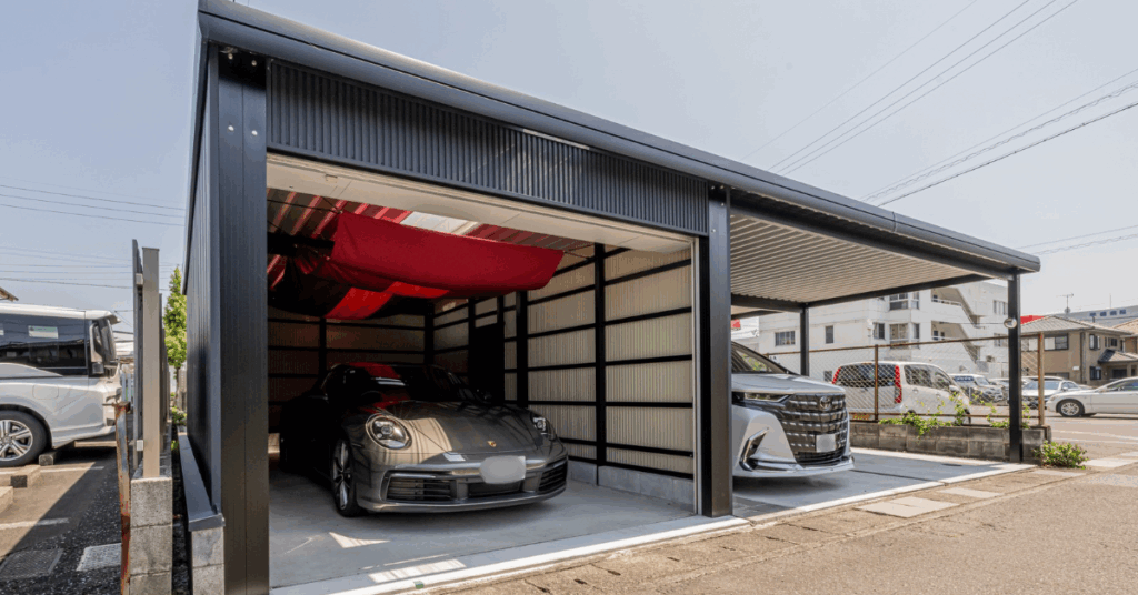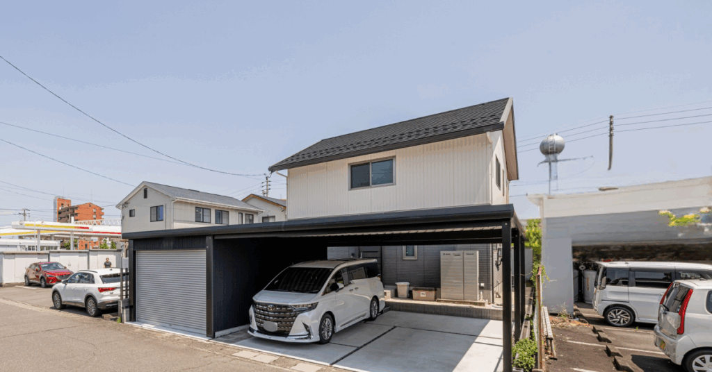 ご家族が乗る車と、ご主人の趣味の車を停められる2台分のガレージを設置。1台分はシャッター付きのガレージにすることで、大切な車を雨風から守れるようにしました。