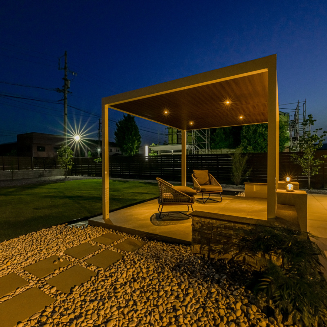 お庭をリゾー ト感溢れるラグジュアリーな空間に仕上げ、