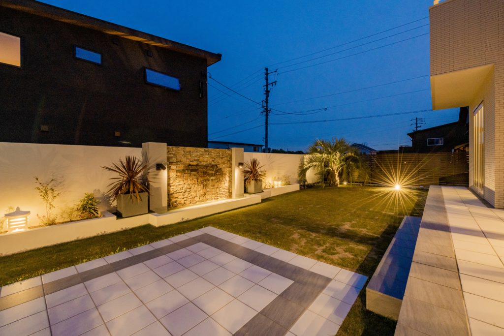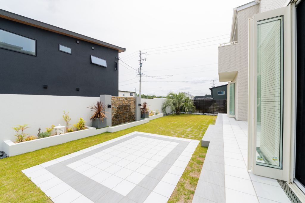 旅行に行かなくても、庭でリゾート気分。プライベート感たっぷりの外構で、夏の休日をゆったり過ごせます。