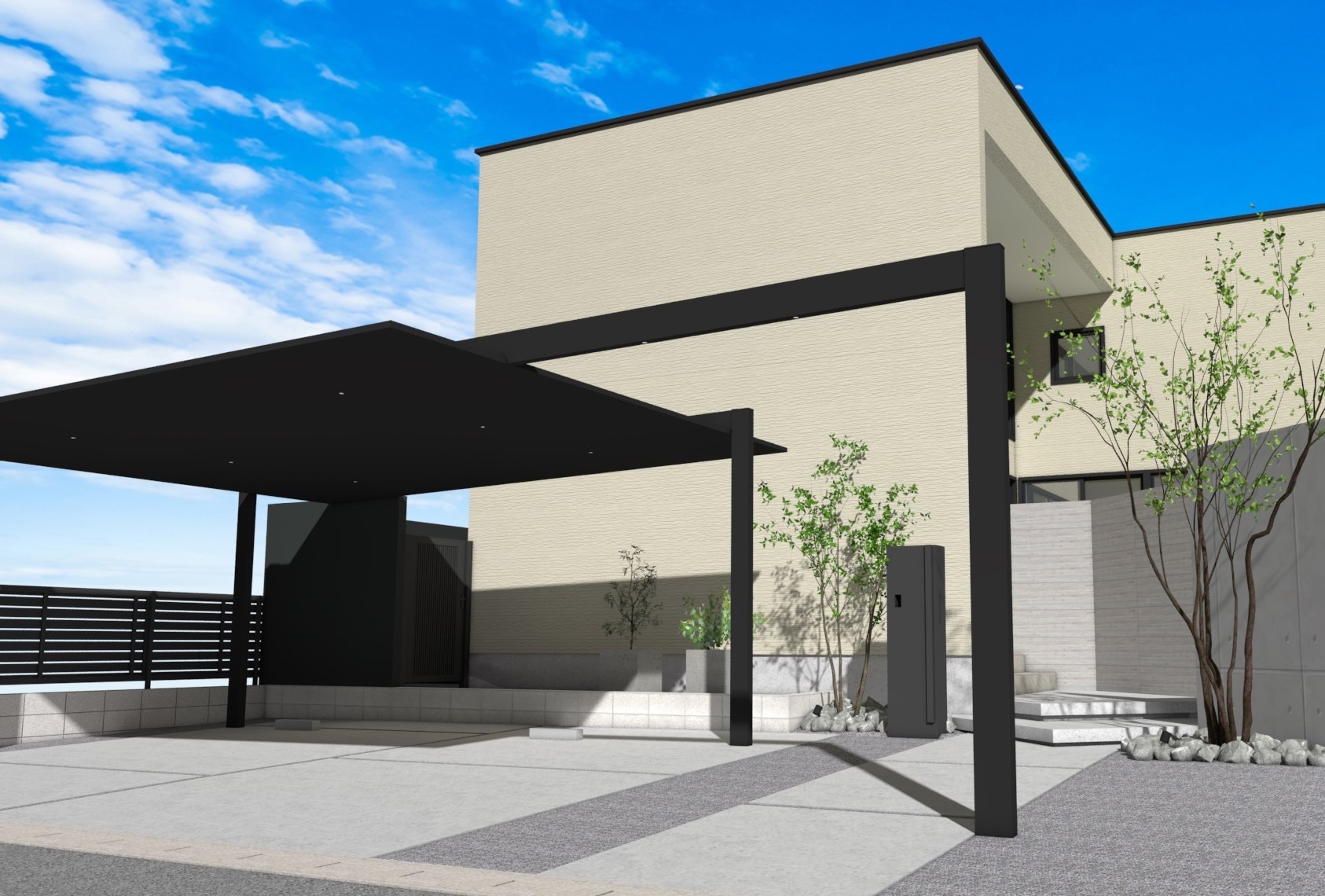 【素材の組み合わせが美しいモダンな外構デザイン】